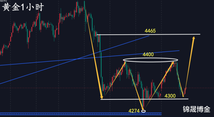 支撑在4300关口,压力就是4400关口,如果下周能再冲上去,那么第三次触及4400关口破位的概率就很大,破位就意味着头肩底形态大概率可以成型。